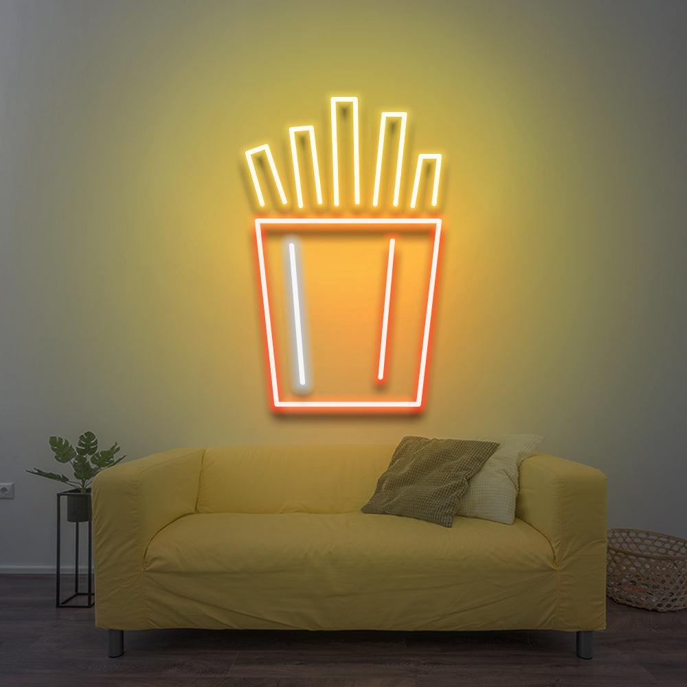 Celebre el delicioso mundo de las papas fritas con nuestro letrero de neón LED "French Fries", perfecto para quienes disfrutan de la cultura infinita de este irresistible refrigerio. Ideal para cocinas, dormitorios, hamburgueserías, lugares de comida rápida y establecimientos de papas fritas, este letrero agrega un toque delicioso a su decoración. Diseñado con tecnología LED de bajo consumo, este letrero de neón es tan ecológico como cautivador. Dale sabor a tu espacio y disfruta de tu pasión por las papas fritas con este elegante letrero de neón.