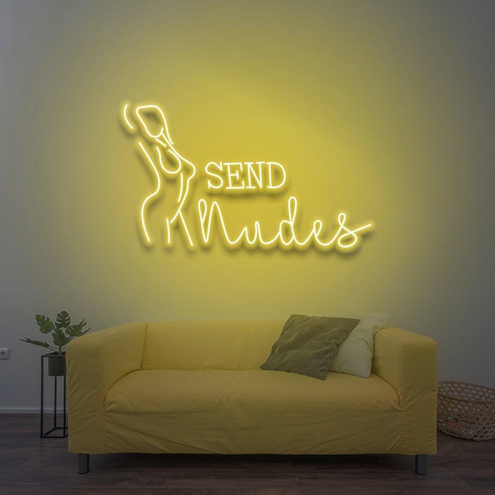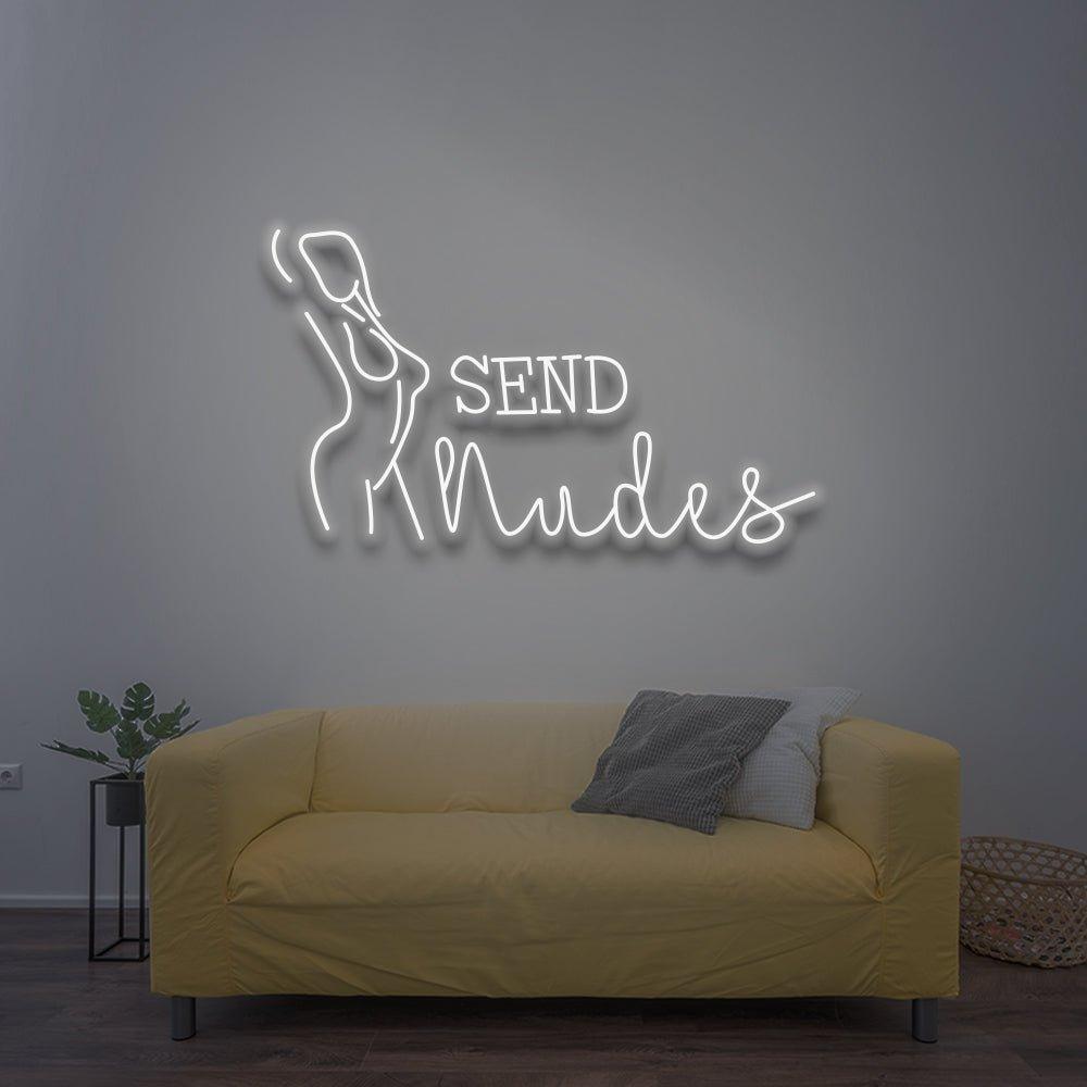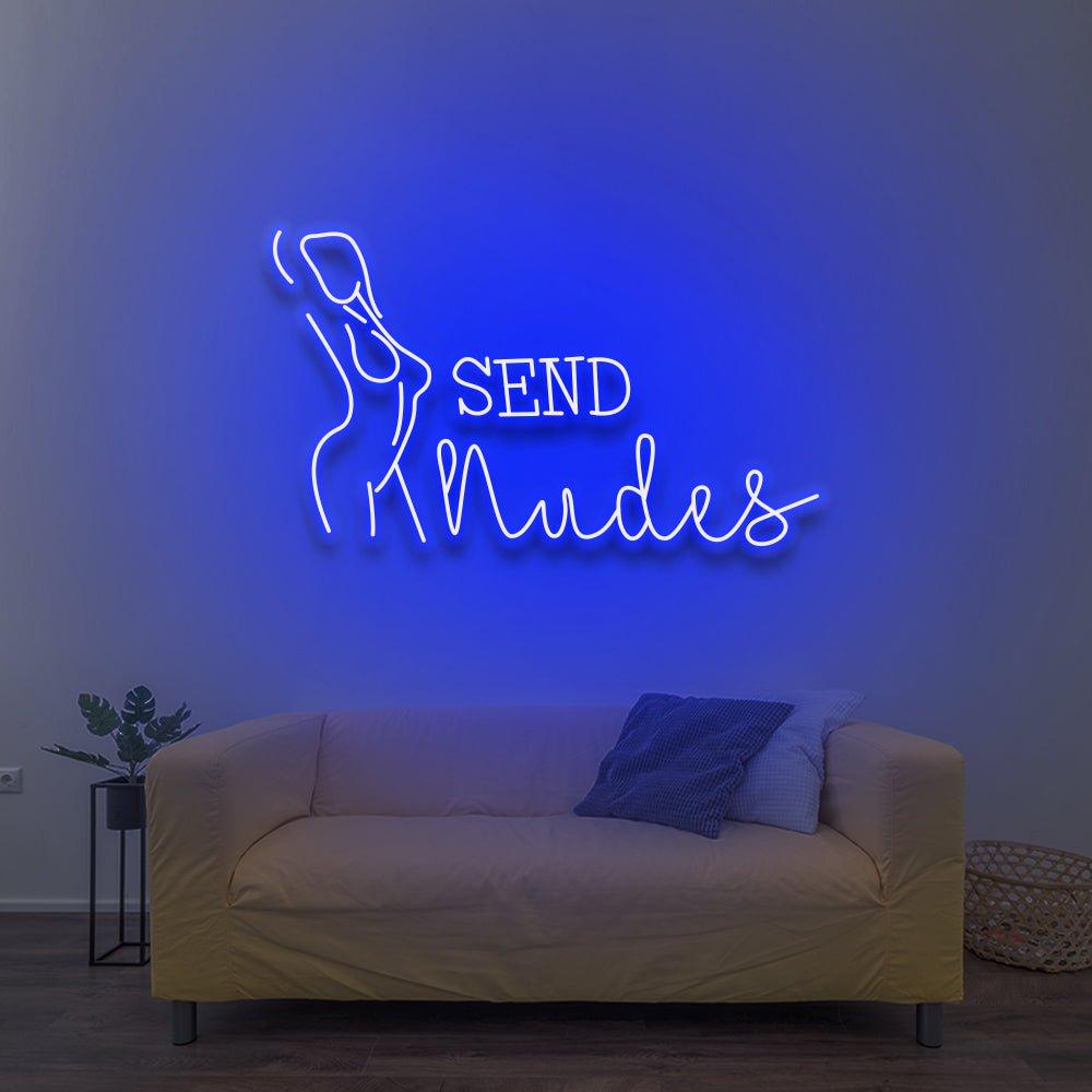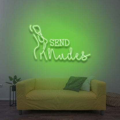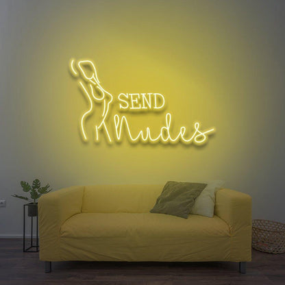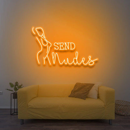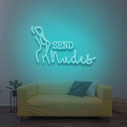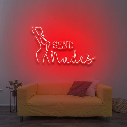 "Nudes", el letrero de neón LED perfecto para aquellos que aprecian y celebran la belleza y el encanto de las mujeres. Este letrero de neón de alta calidad y de bajo consumo presenta la frase cautivadora "Send Nudes" en luces LED llamativas y animadas. Ideal para Agregando un toque de diversión y energía coqueta a dormitorios, pisos de soltero o cualquier espacio donde se adopte un ambiente moderno y alegre, este letrero duradero y fácil de instalar es un iniciador de conversación y una declaración de autoexpresión. ¡Recupera tu confianza interior y deja que tu aprecio por las mujeres brille con esta audaz declaración de neón!