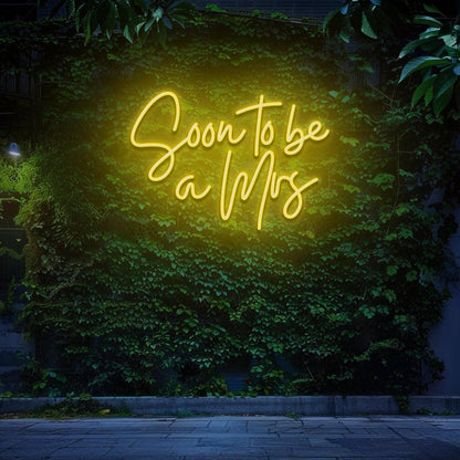 Our "Soon to Be a Mrs" neon sign is just the glowing detail she needs to complete any bridal celebration. Light her walk down the aisle to wedded bliss. It is the perfect centerpiece at bachelorette parties, bridal showers, and engagement parties. I bet "Miss" and hang it up so that one can splurge on it. This romantic red glows. LED neon flex is an environment-friendly technology to the traditional neon lighting system, producing bright yet energy-saving glowing. This neon sign is made to last, easy to install, and the love of love. It will serve as a lovely memento of the bride's unique journey to the altar.
