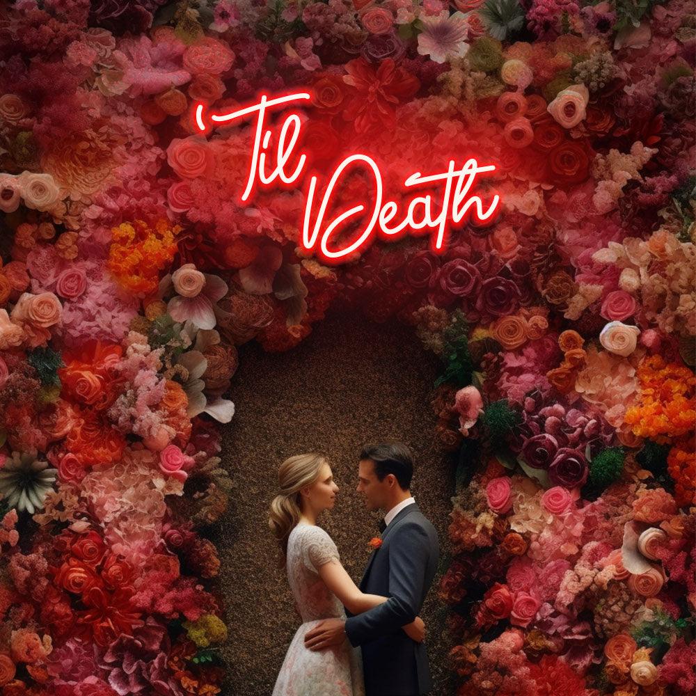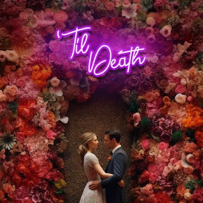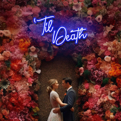 Nuestro letrero de neón LED "'Till Death" es un símbolo perfecto de compromiso inquebrantable. Esta poderosa pieza de decoración habla mucho de amor y unidad duraderos, lo que la convierte en un complemento perfecto para su espacio compartido o en un regalo inolvidable para su cónyuge. Expresa tu amor eterno con un estilo tan duradero como tus votos.