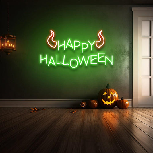Letrero de neón LED con cuerno de Feliz Halloween