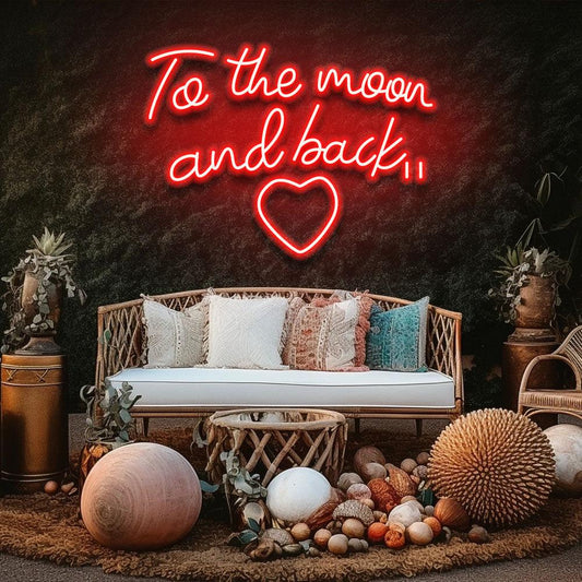 A la luna y de regreso (corazón) - Letrero de neón LED