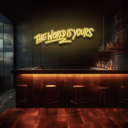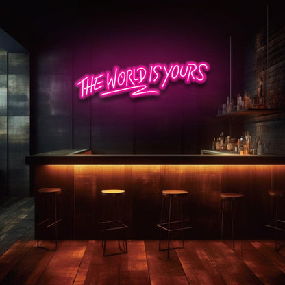 Renforcez votre espace avec notre enseigne au néon LED « The World Is Yours ». Cette pièce inspirante nous rappelle quotidiennement qu’aucun objectif n’est trop ambitieux ni aucun rêve trop grand. Idéal pour les espaces personnels, les salles de sport et les chambres, il alimente le feu de l’ambition. Laissez cela être le catalyseur de votre voyage vers la domination du monde.