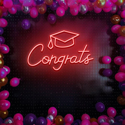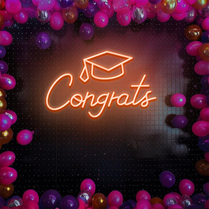 Célébrez vos réalisations avec un style brillant avec notre panneau néon « Félicitations », élégamment associé à un emblème de casquette de remise de diplôme. Ce panneau de félicitations brille d'une teinte corail joyeuse, délivrant un message réconfortant dans une police cursive qui ajoute une touche personnelle à tout événement de félicitations. L'ajout du symbole emblématique de la casquette de graduation le rend particulièrement parfait pour marquer les résultats scolaires, des diplômes d'études secondaires aux diplômes supérieurs. Utilisant la meilleure technologie LED néon flexible, l'enseigne offre une lumière vive et accueillante, à la fois économe en énergie et respectueuse de l'environnement. Il est conçu pour durer et simple à installer, de sorte que vous pouvez sans effort créer un point focal pour les fêtes de remise des diplômes, les rassemblements de félicitations ou comme installation permanente pour commémorer une réalisation importante. Cette enseigne au néon « Félicitations » avec casquette de remise de diplôme n'est pas seulement une décoration mais un phare de fierté pour le diplômé qui travaille dur.