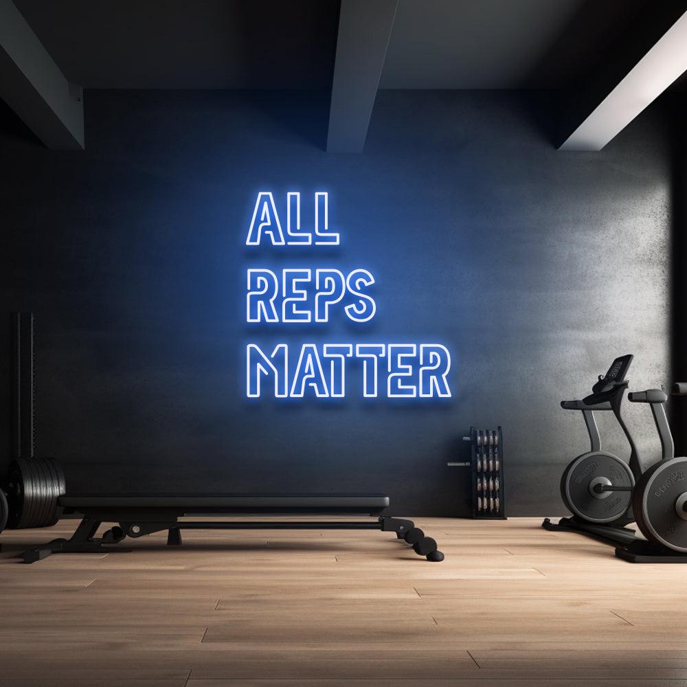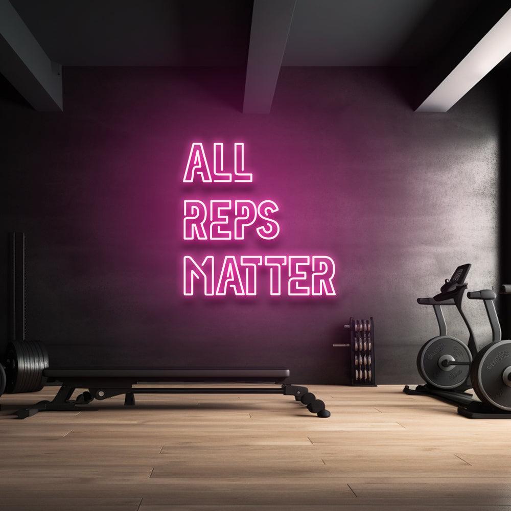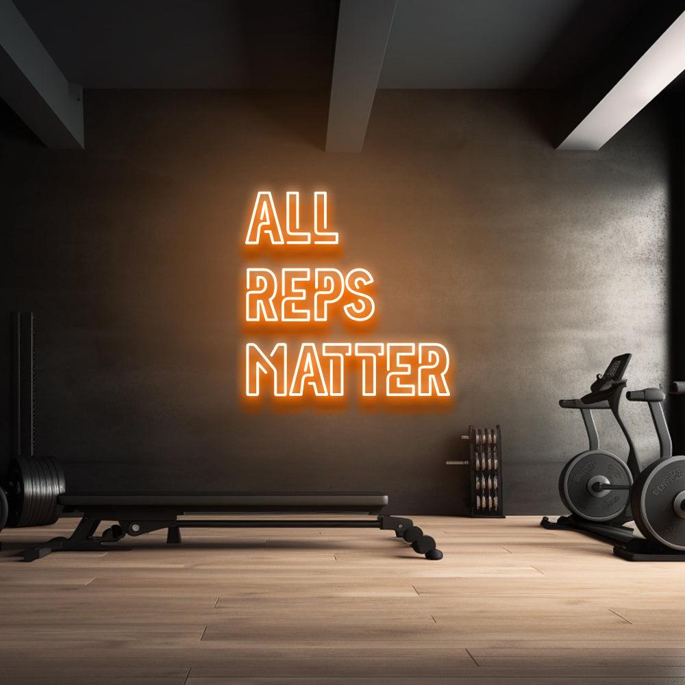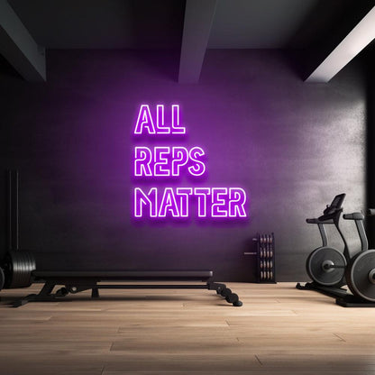 Alimentez votre parcours de remise en forme avec la présence vibrante et lumineuse de l'enseigne au néon « All Reps Matter ». Tous les amateurs de gym connaissent l'importance de chaque répétition, et cette pièce néon électrisante rappelle quotidiennement le dévouement, la persévérance et la sueur derrière chaque série.