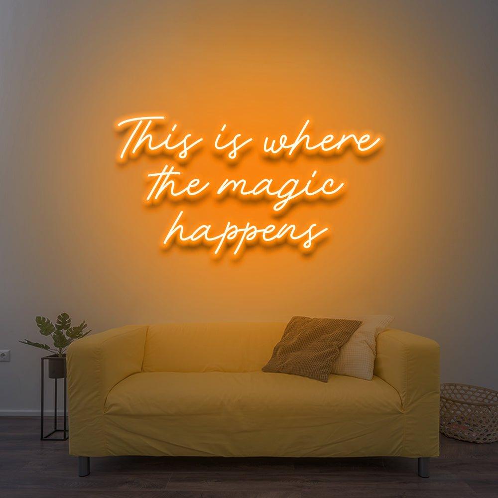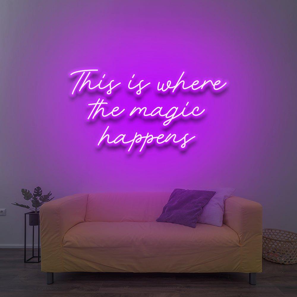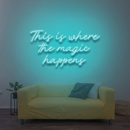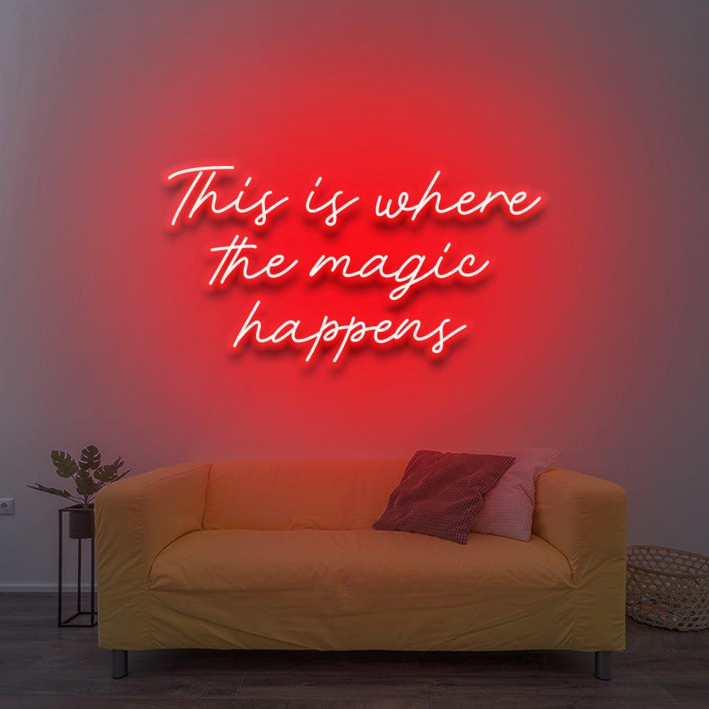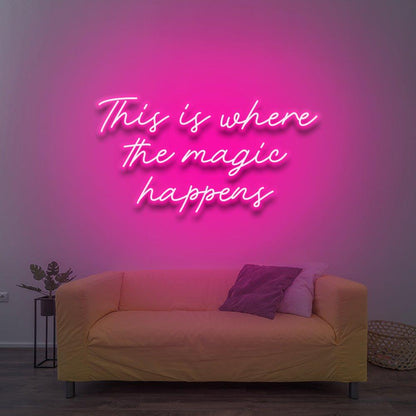 Transformez votre espace avec notre charmante enseigne au néon LED « C'est là que la magie se produit », l'accent captivant parfait pour ceux qui chérissent les possibilités illimitées et la créativité de leur maison, de leur espace de travail ou de leur chambre. Cette enseigne au néon de haute qualité et économe en énergie présente la phrase inspirante « This is Where the Magic Happens » dans des lumières LED fascinantes et rayonnantes. Idéale pour les espaces de vie, les bureaux ou tout espace où l'imagination et l'innovation sont nourries, cette enseigne facile à installer et durable ajoute une touche d'émerveillement et de motivation à votre environnement. Laissez briller votre passion pour la création et célébrez la magie de votre refuge personnel avec cette séduisante déclaration néon !