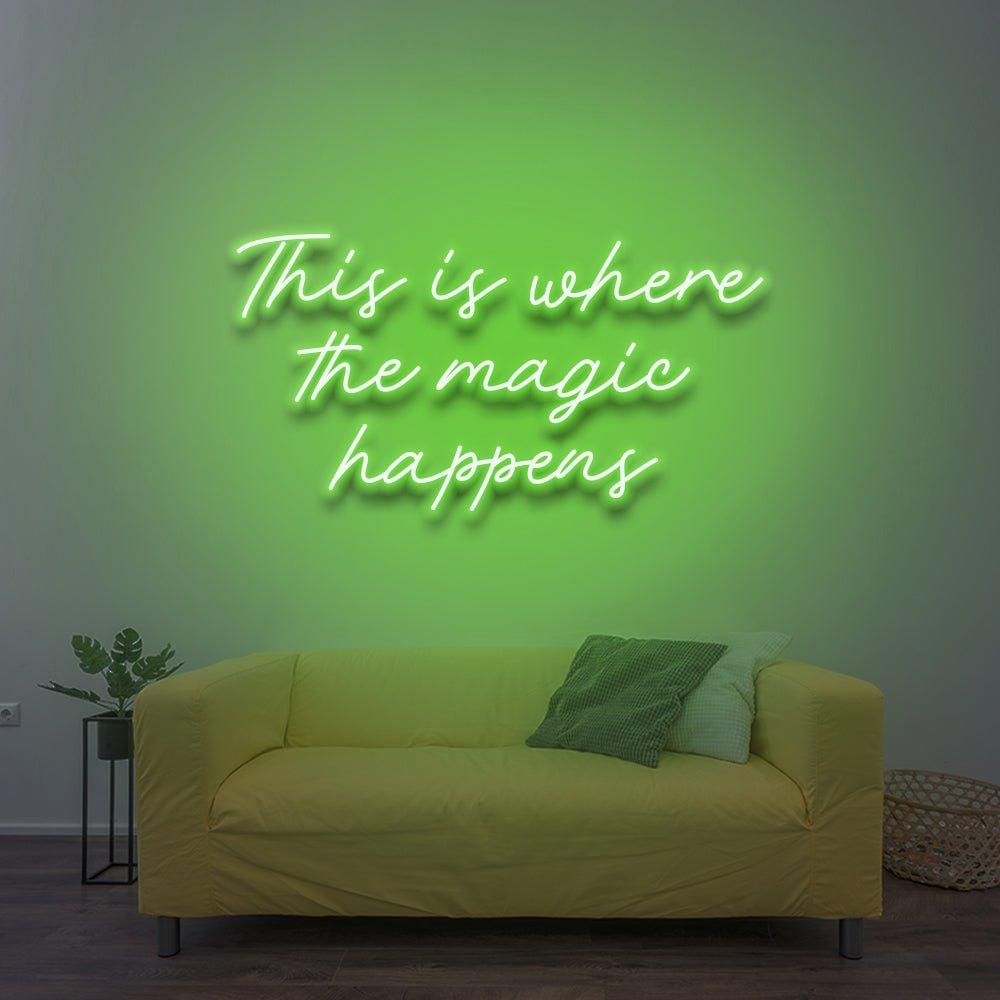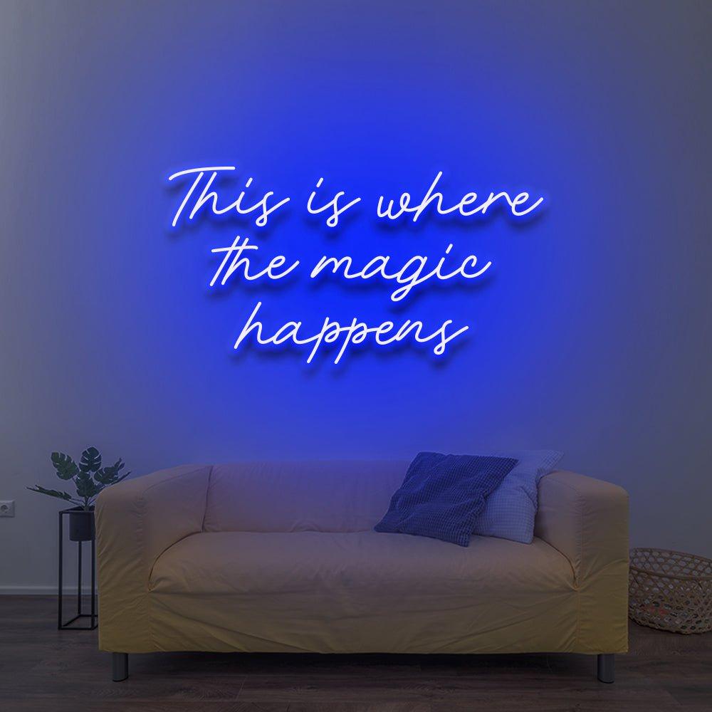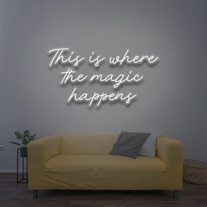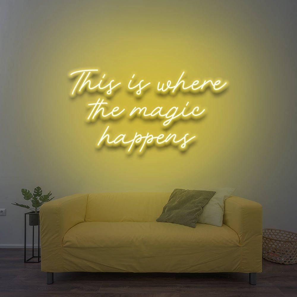 Transformez votre espace avec notre charmante enseigne au néon LED « C'est là que la magie se produit », l'accent captivant parfait pour ceux qui chérissent les possibilités illimitées et la créativité de leur maison, de leur espace de travail ou de leur chambre. Cette enseigne au néon de haute qualité et économe en énergie présente la phrase inspirante « This is Where the Magic Happens » dans des lumières LED fascinantes et rayonnantes. Idéale pour les espaces de vie, les bureaux ou tout espace où l'imagination et l'innovation sont nourries, cette enseigne facile à installer et durable ajoute une touche d'émerveillement et de motivation à votre environnement. Laissez briller votre passion pour la création et célébrez la magie de votre refuge personnel avec cette séduisante déclaration néon !