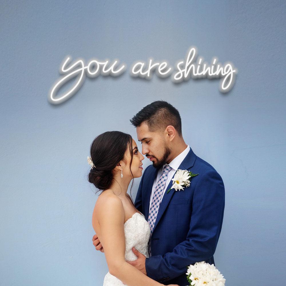 Illuminez votre espace avec notre enseigne au néon LED « You Are Shining ». Conçu pour ceux qui sont profondément amoureux, ce signe rayonne un hommage éclatant à l’éclat éblouissant de votre bien-aimé. Un choix idéal pour susciter la joie et capturer des moments réconfortants dans votre collection de mariage.