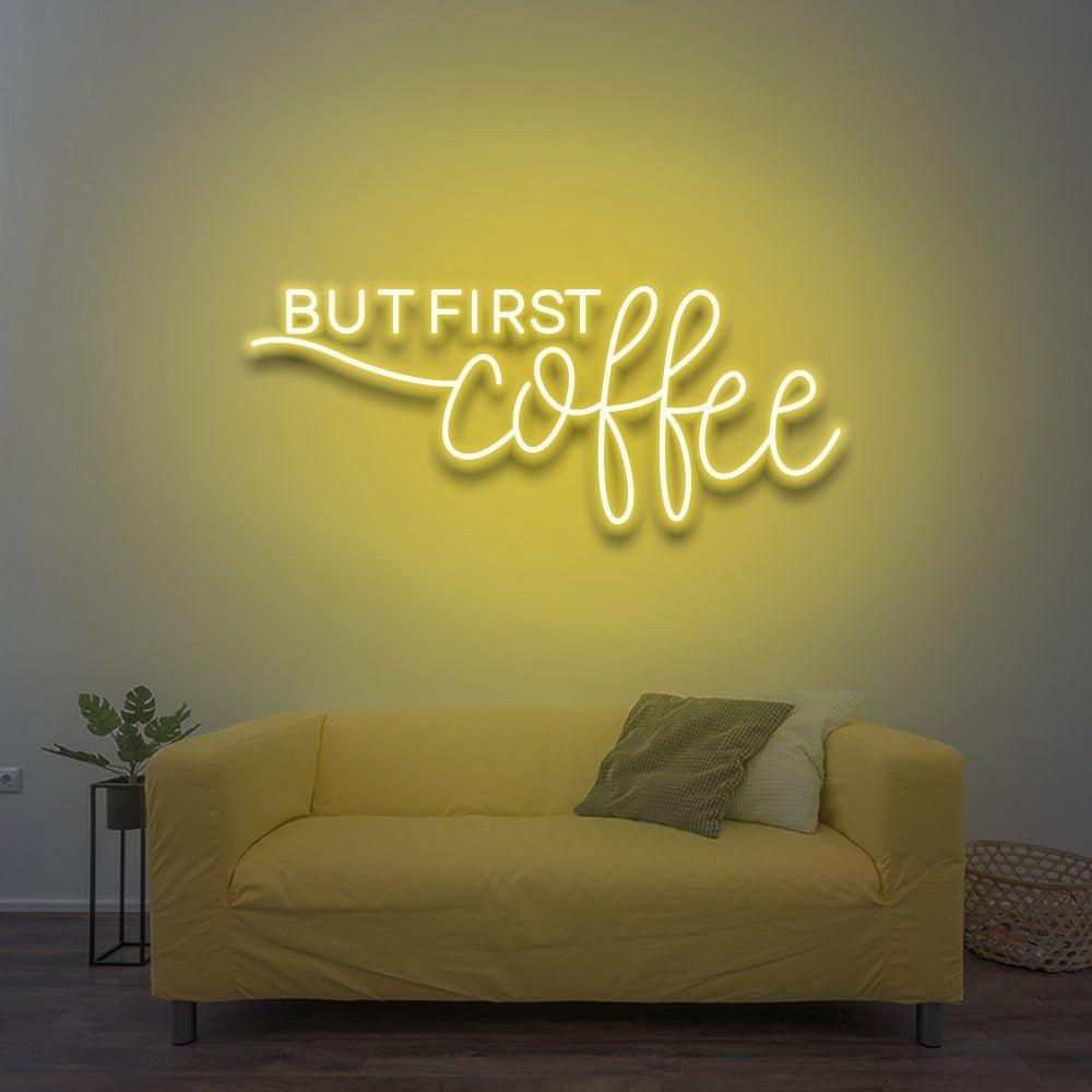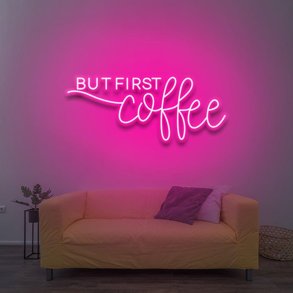 With our But First Coffee LED Neon Sign, you can brighten up your mornings and make a big statement for both coffee shops and coffee lovers! Bold, colorful LED lights display the coffee lover's motto on this premium, energy-efficient neon sign. Perfect for cafés, residential kitchens, or work break areas, this durable, easy-to-install sign brings a fun element to any area with coffee. Use this striking neon delight to brighten your surroundings and show your devotion to the daily grind!