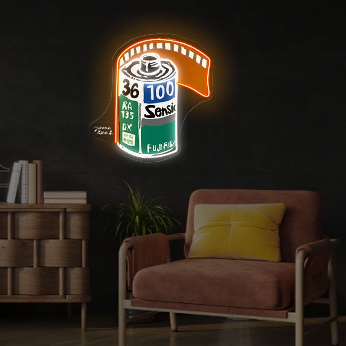 Add a touch of nostalgia and creativity with the "Camera Film" Neon Sign. This vintage-inspired art celebrates the timelessness of analog photography with a bright, colorful reel of film brought alive by glowing LED neon lights.