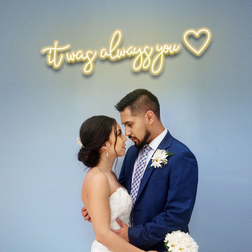 This is a lifelong connection, bond with our "It Was Always You" LED neon sign. Designed for couples who are always in love, cherish this room sign, which glows in soft romantic lights. Perfect for treasuring the right ambiance to make beautiful memories.