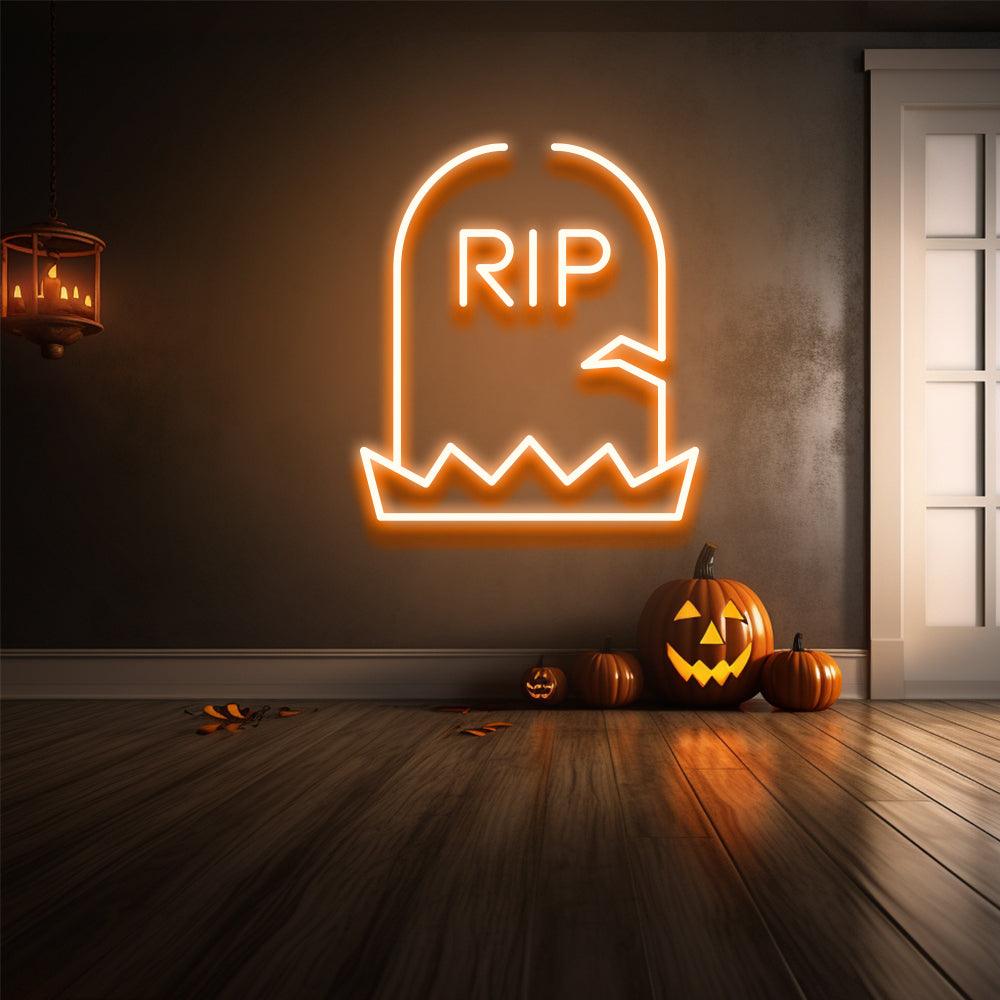 Discover the eerie allure of our "RIP" LED neon sign. This piece is the pinnacle of spooky sophistication, with its ominous gravestone silhouette, hauntingly eerie font, and carefully chosen Halloween background. Perfect for fans of original artwork, this sign subtly captures the essence of Halloween while projecting a modern, artistic vibe. This season, set the mood for a spine-tingling atmosphere by letting your space honor the mysteries that lie beyond. Choose from NeonNiche's selections to delve deeper into the allure of the night, where each sign reveals a ghostly tale.