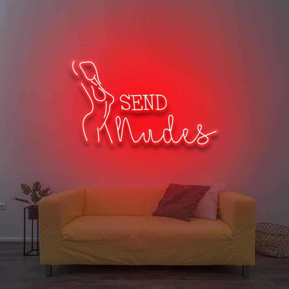 The Send Nudes LED Neon Sign is the ideal sly accent for people who value and celebrate women's beauty and allure! This attractive neon sign uses less energy and is of excellent quality. It displays the words "Send Nudes" in bright, vibrant LED lights. This durable, conversation-starting sign is a great way to express yourself and start a conversation in bedrooms, bachelor pads, or any other area where a modern, carefree vibe is embraced. It's also easy to install. With this bold neon declaration, you can show off your inner confidence and appreciation for women!