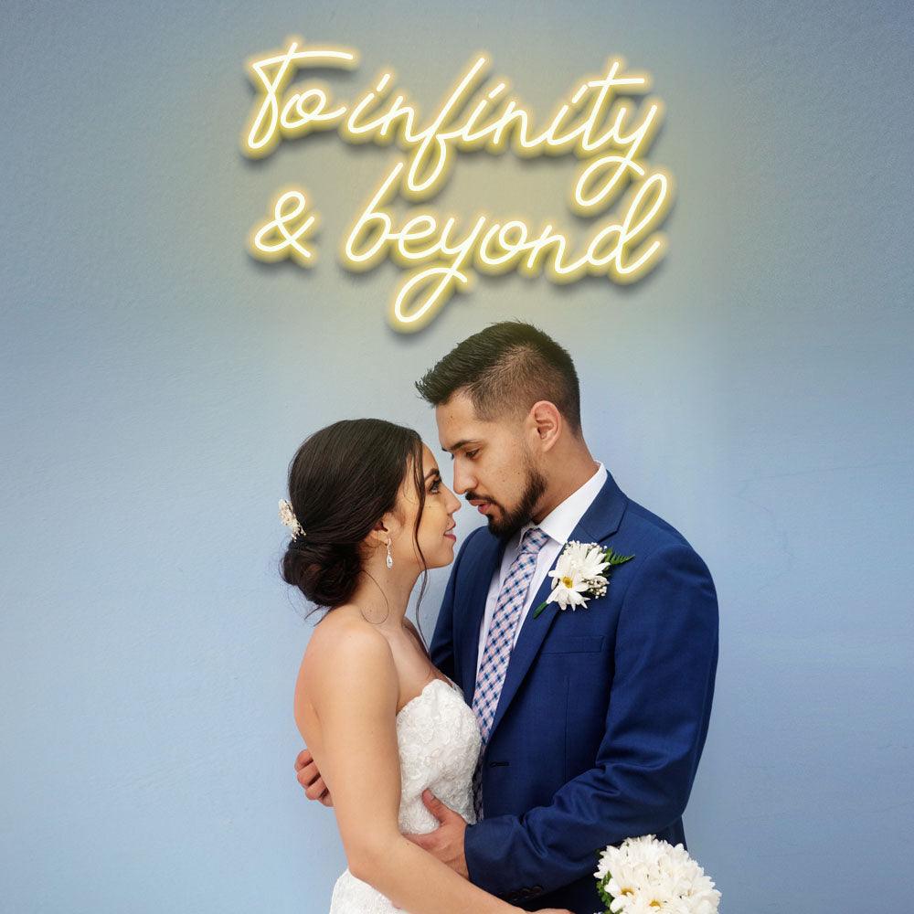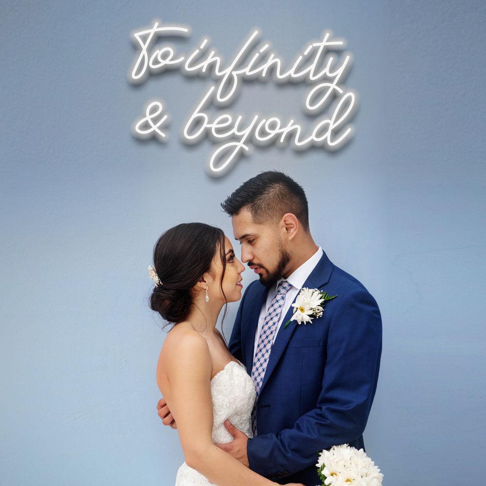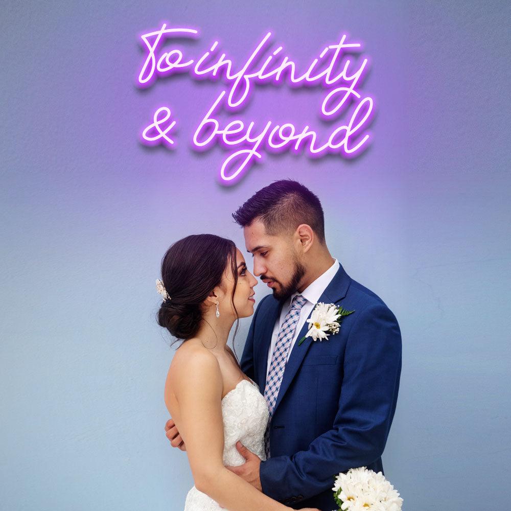 With our "To Infinity and Beyond" LED Neon Sign, you can ignite a lasting relationship. This sign is a stunning illustration of the boundless love that exists between two souls and is ideal for love that knows no boundaries. An ideal complement to your wedding attire.
